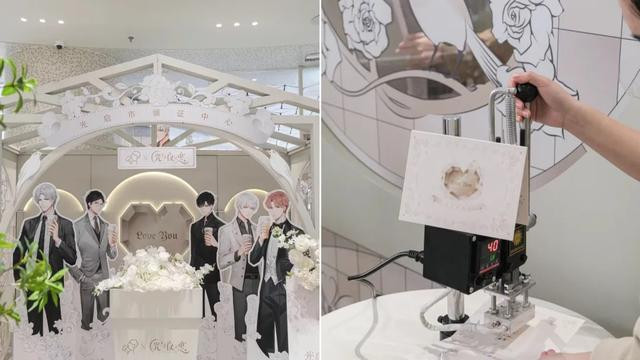 游戏玩家可以到主题门店与角色的人形立牌领证、宣誓、持证“结婚”,情绪价值拉满。